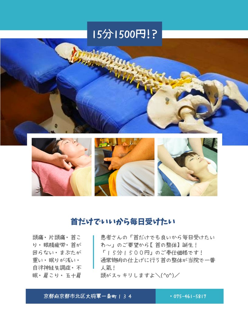 そんなご要望にお応えして誕生したのが【首の整体~15分1500円のヘッドマッサージ~】です。